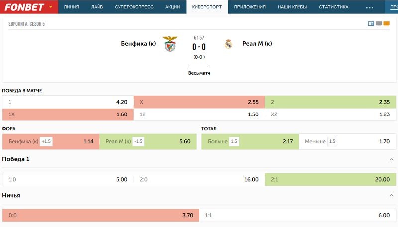 Виртуальный футбол в букмекерских конторах представлен следующими рынками: