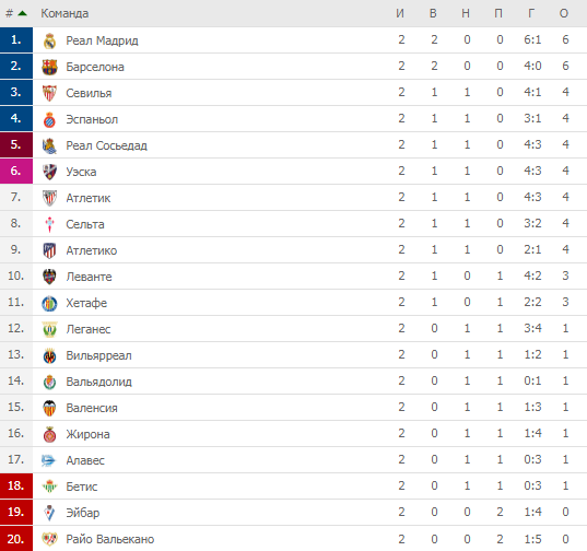 Второй тур испанской Примеры подошел к своему логическому завершению. «Реал» и «Барселона» продолжают собирать максимум, все остальные команды уже успели потерять энное количество очков.