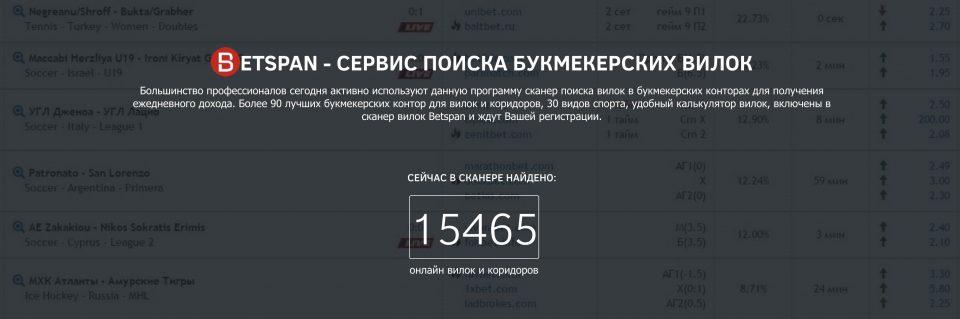 Другие полезные функции Betspan – фильтр по выбранным БК, типу вилок, виду спорта, количеству исходов. Программа может похвастаться интуитивно понятным интерфейсом: слева корректируется поиск вилок, а справа появляются результаты. Также можно включить звуковое уведомление о появлении новых арбитражных ситуаций, найти единомышленников на форуме или рассчитать доходность в здешнем калькуляторе.