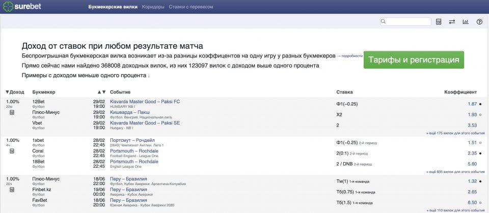 Простая и понятная система поиска вилок, предоставляющая информацию по более чем 30 российским БК. Вся нужная информация находится на главной странице портала. С 2020 года доступ стал бесплатным.