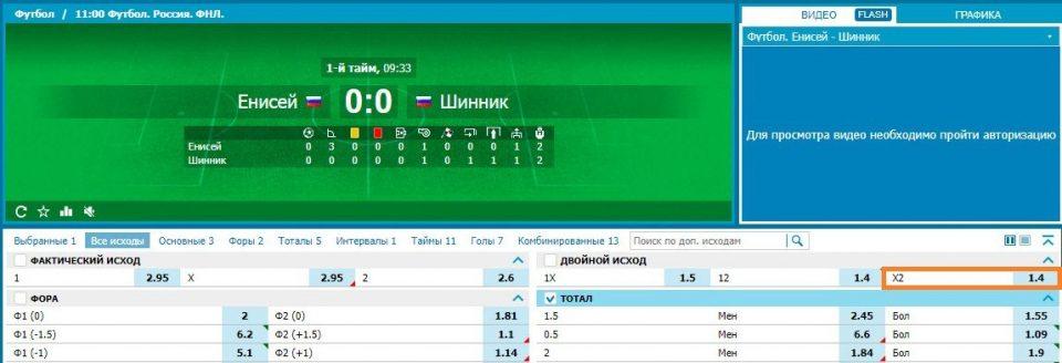 Размер выигрыша определяется кэфом, который был во время принятия ставки. Возьмем для примера матч «Енисей» — «Шинник». Если поставить 10$, выбрав 2Х, то победа или ничья «Шинника» принесет 14$, из которых 4$ составит прибыль — (10$*1.4)-10$=4$.