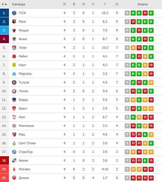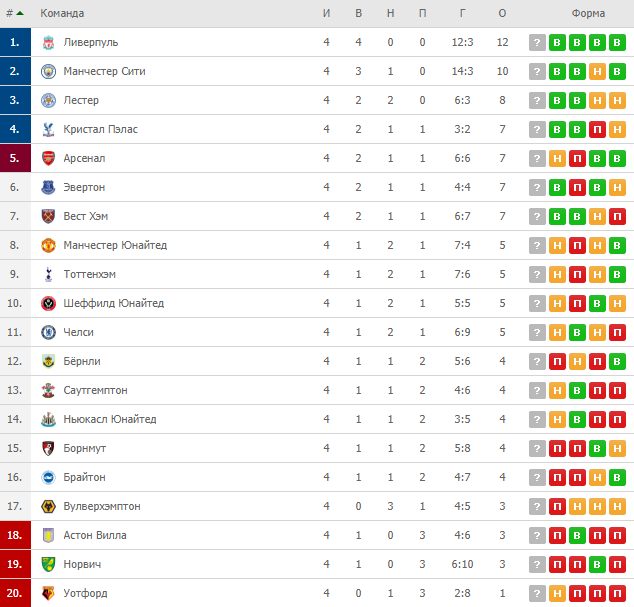 Турнирная таблица: