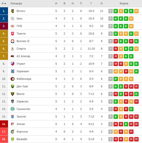 Завершить хотелось бы на позитивной ноте. «Витесс» под руководством Леонида Слуцкого довёл серию без поражений до 5 матчей и возглавил турнирную таблицу Эредивизи. Победа над «АЗ Алкмар» со счётом 2:1 позволила набрать 11 очков и возглавить чемпионат. Правда основные преследователи свои матчи 5 тура пока не сыграли.
