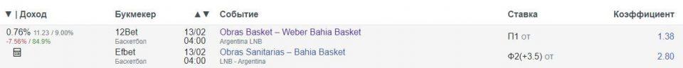 - Матч завершится в пользу «Обрас Баскет» с преимуществом до 3,5 очков. Тогда сыграют обе ставки, что принесёт нам сразу 218 долларов прибыли.