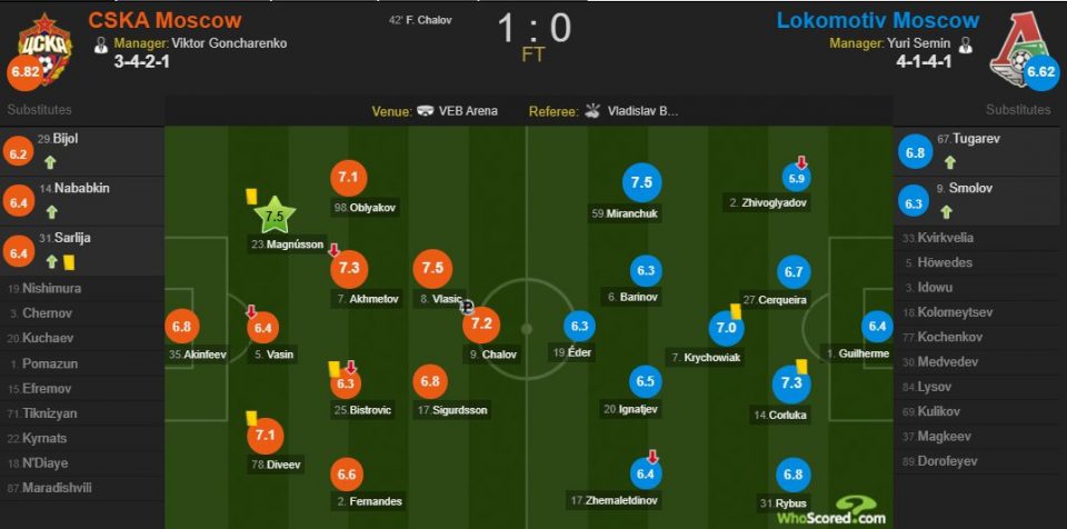 Вкратце, первые 45 минут игры — ЗА «ЦСКА». Команда больше владела инициативой, не давала сопернику создавать опасные моменты. Единственная контратака «Локомотива» в первом тайме закончилась офсайдом.