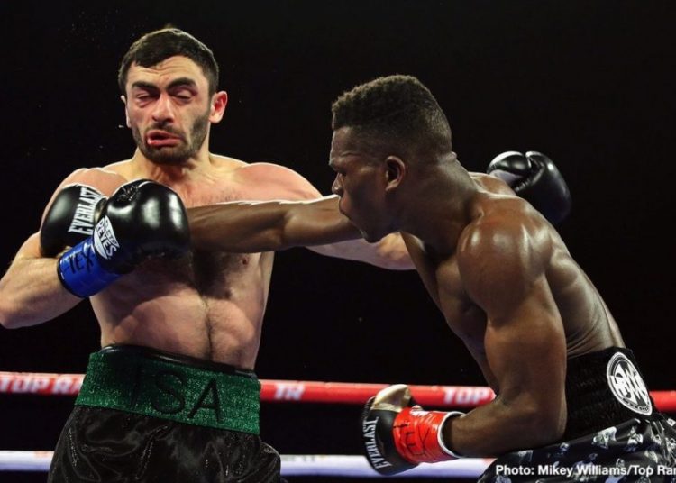 Сегодня в пригороде Далласа в андеркарде у Ковалёва и Альвареса разыгрывали вакантный титул IBF в легком весе (до 61.2 кг) ганец Ричард Комми и россиянин Иса Чаниев. Ожидаемую победу нокаутом одержал африканский боксер и впервые в своей карьере стал чемпионом мира.