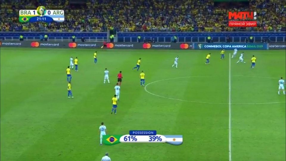 Как и ожидалось, Бразилия взяла мяч под свой контроль. Уже на 16 минуте Жезус мог открывать счет, обработай качественно передачу, которая прошла между двумя защитникам Аргентины. В первые 20 минут владение «круглым»: 61% на 39%.