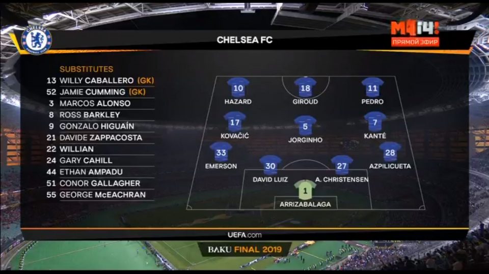 Трехкратный обладатель Лиги Европы Унаи Эмери не смог повторить подвиг в текущем матче. Удача улыбнулась итальянскому специалисту Маурицио Сарри. Это его первый трофей в тренерской карьере.