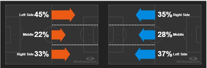 Направление атак тому доказательство, что у «аристократов» левый фланг был более активнее — 45 %.