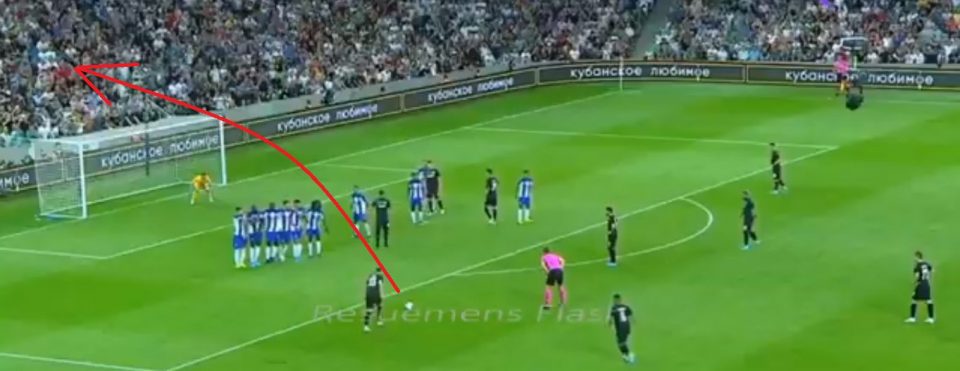 Теперь вспомним точно такой штрафной у «Краснодара» на 39 минуте! Тогда Берг перебросил не только «стенку», но и ворота. Вот и разница футболистов! Вопрос следующий: почему доверили пробить этот штрафной именно Бергу? Не было других исполнителей?
