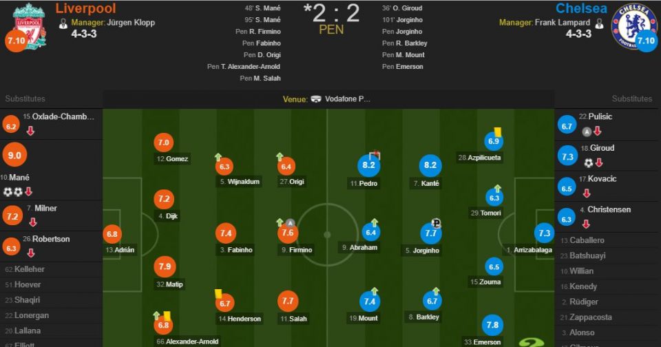 Результат матча Ливерпуль — Челси (2:2), по пен. 5:4