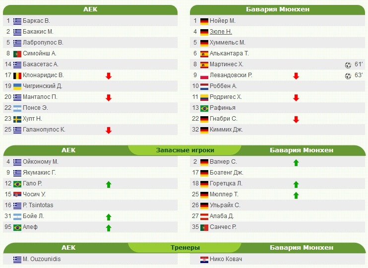 Результат матча АЕК — Бавария (0:2)