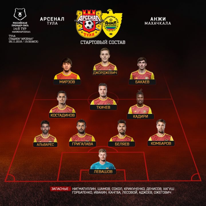 Результат матча Арсенал Тула — Анжи (2:0)