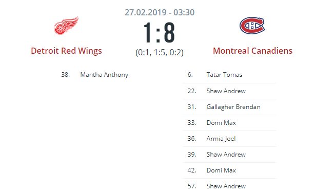 Полное доминирование «Монреаля». Главный тренер «Хабс» Клод Жюльен воссоединил тройку Друэн, Доми, Шоу и они выдали шедевральный матч. Эндрю Шоу оформил первый хет-трик в карьере, Друэн сделал 4 ассиста, а Доми забросил 2 шайбы и сделал 3 передачи.