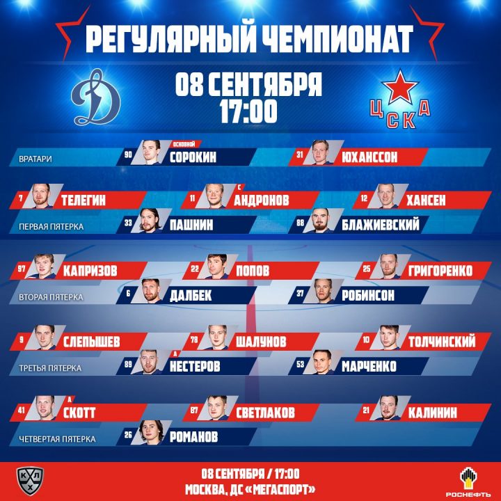 ЦСКА эту игру начал с первой пятерки Телегин, Андронов, Хансен, Пашнин, Блажиевский.
