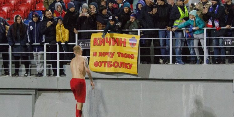 Наверно Кичина вдохновил этот баннер. «Енисей» продолжал давить и создавал достаточно моментов, но им не хватало завершения или остроты в самом конце. Саркисов здорово открывался и находил дыры в защите, но ему просто не хватало или сил или техники, когда мяч попадал ему в ноги. Дарко Бодул так же запорол выход один на один.