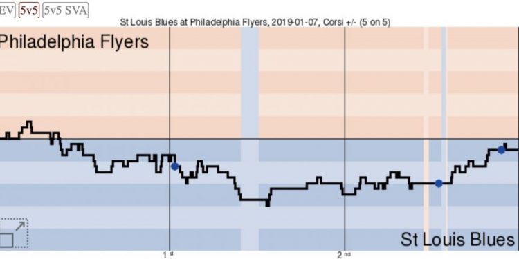 В этом матче встречались соперники, которые неудачно проводят сезон и находятся в поиске своей игры. «Сент-Луис» провел хорошего качества матч и одержал заслуженную победу. На графике Корси видно каким было преимущество гостей в первые 2 периода. В третьем периоде постепенно стали отдавать инициативу «блюзмены».