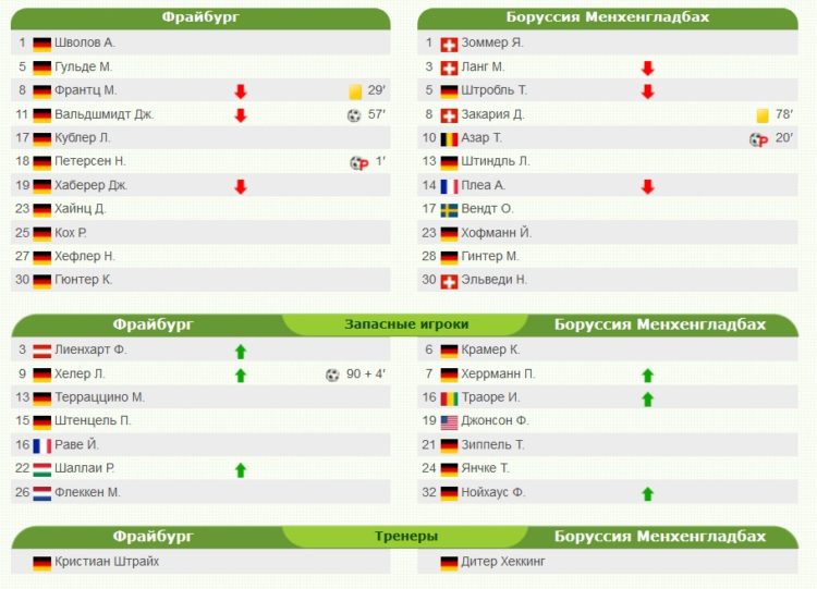 Матч начался с того, что Янн Зоммер на первой минуте подарил «Фрайбургу» пенальти. Гульде Мануэль сделал заброс за спину защитникам, а пострадавшим оказался Лука Вальшмудт, которого Янн сбил с ног. К точке подошел Нильс Петерсен и точно реализовал этот подарок.