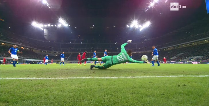 На другом конце поля полностью скучал Доннарумма, которому пришлось вступить в игру только на 77 минуте игры. Все началось с двойной ошибки. Мяч перехватили гости побежали в атаку, но ошиблись и в атаку попытались убежать итальянцы, но тоже ошиблись и со второй попытки гости добрались до штрафной площади соперника. Попытались прострелить, где защитники хозяев выбили мяч. На подборе оказался первым Вильям Карвалью, который точно пробил по воротам из-за предела штрафной, но Доннарумма показал свое мастерство.
