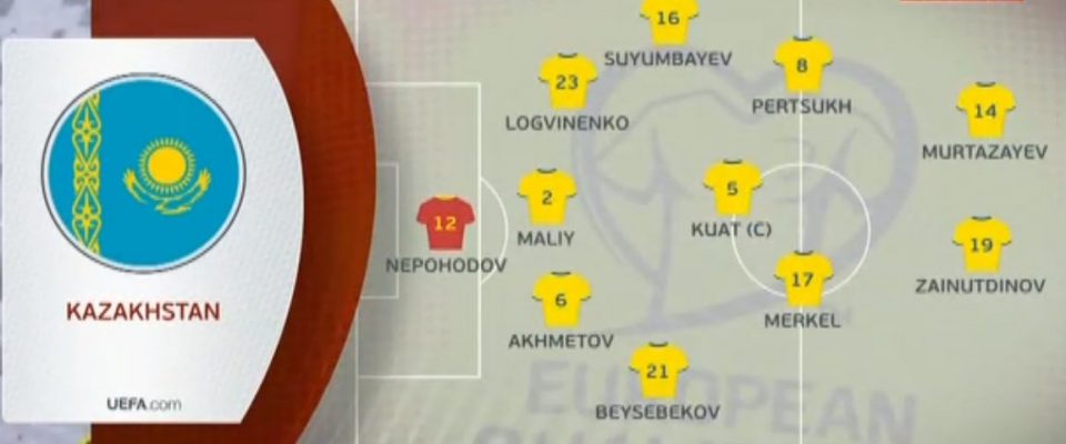 Сборная Казахстана не изменила свою стратегию на игру и осталась практически без изменений, кроме игроков защиты, где один только Малый вышел снова в стартовом составе. Расстановка та же 5-3-2 при обороне и 3-5-2 в атаке.
