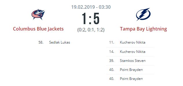 Результат матча Коламбус — Тампа-Бэй (1:5)