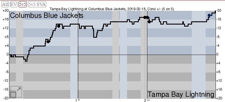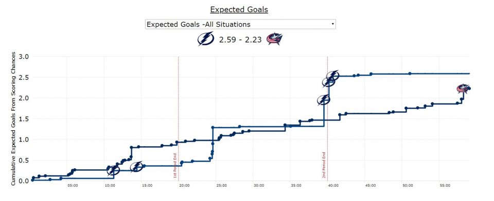 Есть рассмотреть игру через призму расширенной статистики, то мы действительно увидим большое территориальное преимущество «Коламбуса», который значительно переиграл противника по показателю Корси: 63% — 37%.