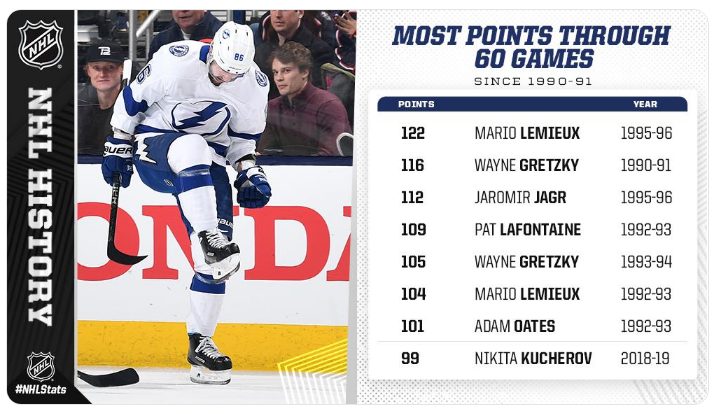 Когда Никита Кучеров в порядке мало кто из противников может остановить «Тампу-Бэй». В этом матче он набрал 5 очков результативности, забросив 2 шайбы и сделав 3 ассиста. Теперь Кучеров имеет 99 очков по системе гол+пас и является лидером лиги по этому показателю.