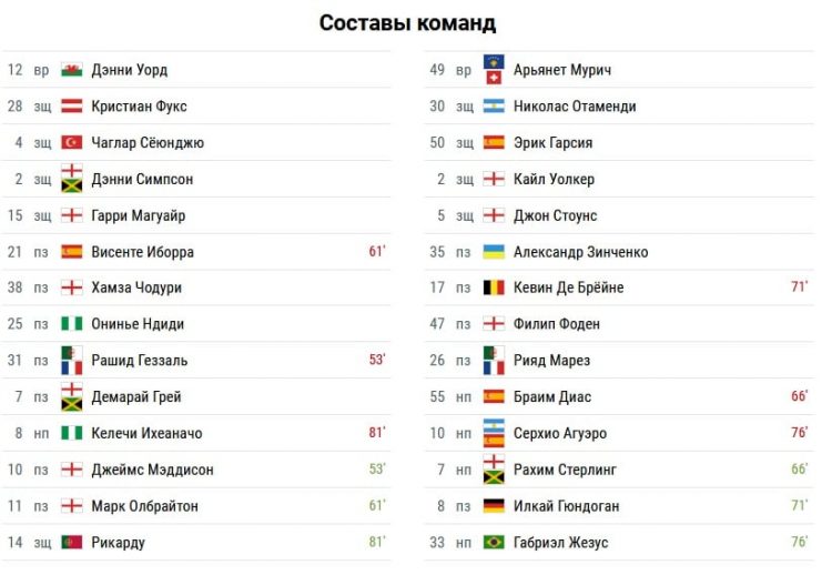 «Лестер» выставил состав близкий к оптимальному, а Гвардиола по традиции провел ротацию состава, но надо сказать, что наконец-то вернулись в строй Де Брёйне и Агуэро.