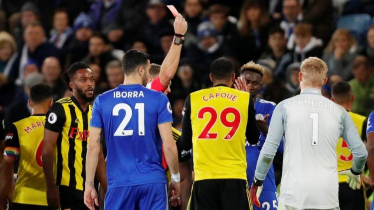 На 90 минуте сдали нервы у Этьена Капу, который совершил грубый фол на Келечи Ихеаначо. Судья без колебаний показал красную карточку. Спорить было бессмысленно. Полностью заслуженное удаление, но Капу пытался доказать свою правоту, судья не поддался на уговоры игрока и выставил его с поля.
