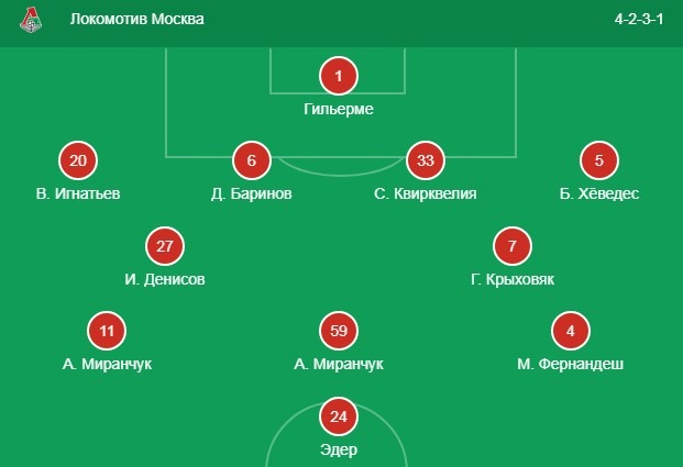 «Локомотив» начал играть по схеме 4-2-3-1, где впереди расположился Эдер, а ему в атаке должны были помогать три футболиста, набравшие в последнее время мощный ход: оба брата Миранчука и Фернандеш. Именно эти три футболиста «делают погоду» в команде в последнее время.