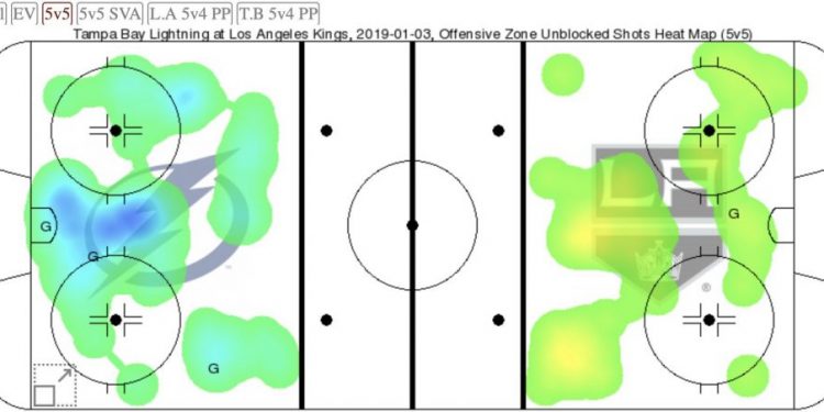 На тепловой карте бросков прекрасно видно, что хозяева площадки из опасных зон угрожали воротам соперника не так часто.