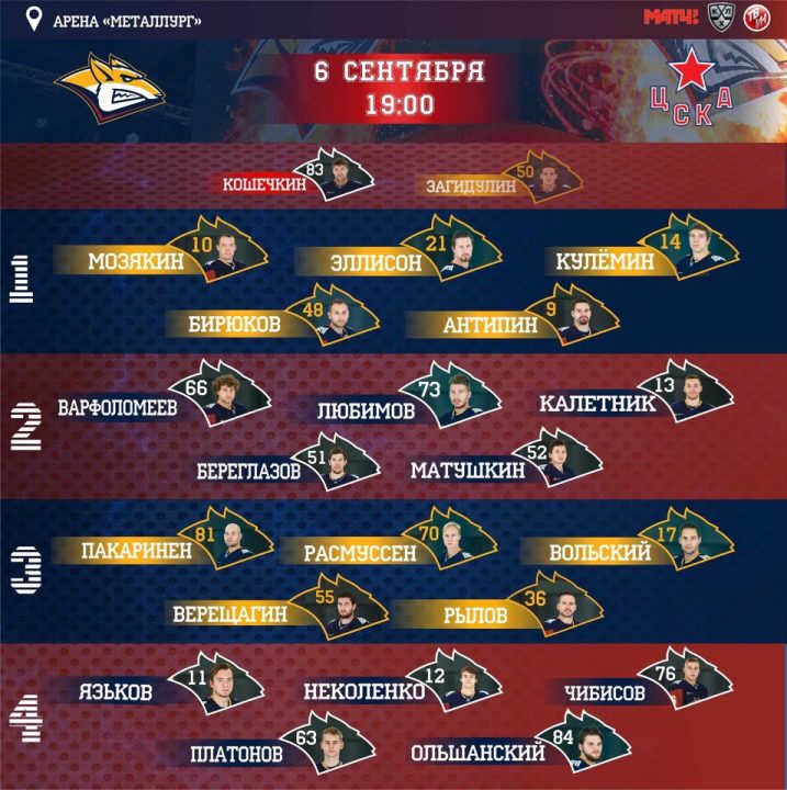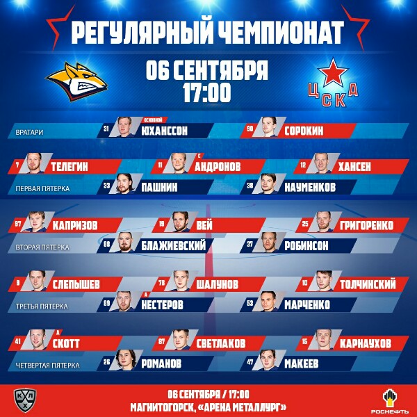 А вот армейцы не стали ничего ломать в своих ударном звене: Капризов — Вей — Григоренко. А вот остальные звенья претерпели небольшие изменения вызванные ротацией состава. В том числе и последний рубеж, где первый матч в сезоне проводил Юханссон.