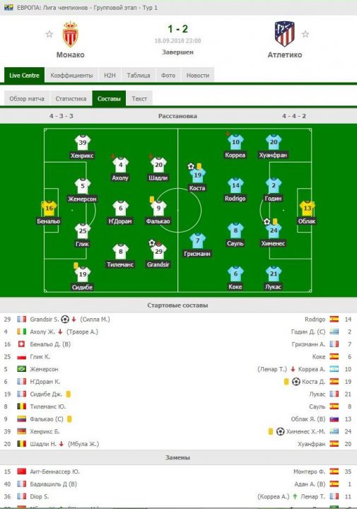 Гризманн уже на второй минуте встречи нашёл разрезающей передачей Диего Косту, вывел форварда сборной Испании один на один на свидание с Диего Бенальо. Коста пробил в дальний нижний угол, но швейцарский страж ворот дотянулся до мяча. Арбитр, кстати, этого не заметил и вообще назначил удар от ворот. Так миновала первая угроза воротам «Монако».