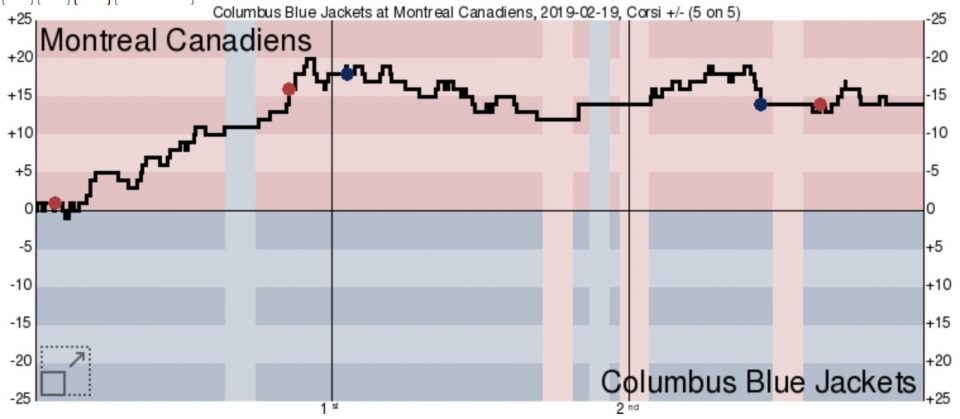 Усталость гостей определенно сказалась на содержании игры. «Монреаль» явно сильнее соперника провёл 1-й и 3-й периоды, значительно превзойдя по показателю Корси: 70% — 30% в первом периоде, 57% — 43% в матче.