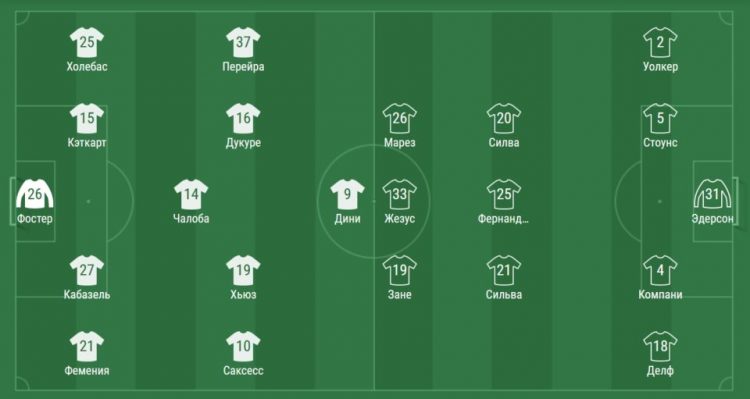 Хозяевам пришлось обойтись без одного из лидеров команды Этьена Капу, а «Манчестер Сити» вынужден был играть без Серхио Агуэро из-за болезни. Стоит отметить, что при этом Гвардиола провел небольшую ротацию состава и оставил на скамейке: Эмерика Ляпорта и Рахима Стерлинга.