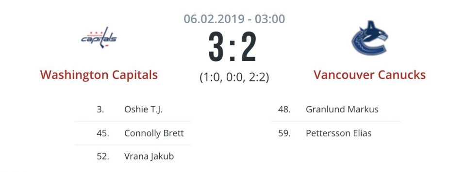 «Вашингтон» после провального января, февраль начал неплохо. Обыграли лидера Западной конференции «Калгари» со счетом 4:3. В прошлом туре с футбольным счетом уступили «Бостону» 0:1, но вернулись на победный путь после приезда «Ванкувера» в столицу США.