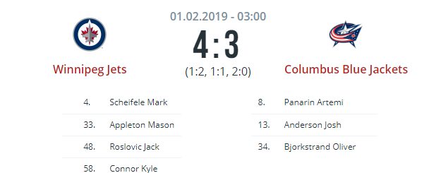 Результат матча Виннипег — Коламбус (4:3)