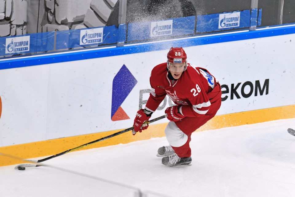 На волне успеха «Зубры» продолжали нагнетать у чужих ворот — Хауден опасно бросал. Во время очередной атаки гостей с ходу, защитник «Витязя» неаккуратно сыграл клюшкой и заработал 2+2 на молодом Дроздове.
