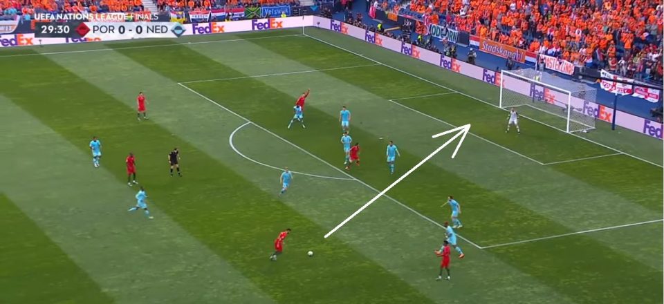 Рональд Куман выбрал стратегию «не спешить» с первых минут и сделать ставку на второй тайм. Это была та игра, когда его подопечные больше владели мячом (59% в первом тайме), но не создавали угроз у ворот соперника. За весь первый тайм нидерландцы смогли нанести аж 1 удар в сторону ворот! Португалицы постепенно переходили в атаку и намного чаще били по воротам.