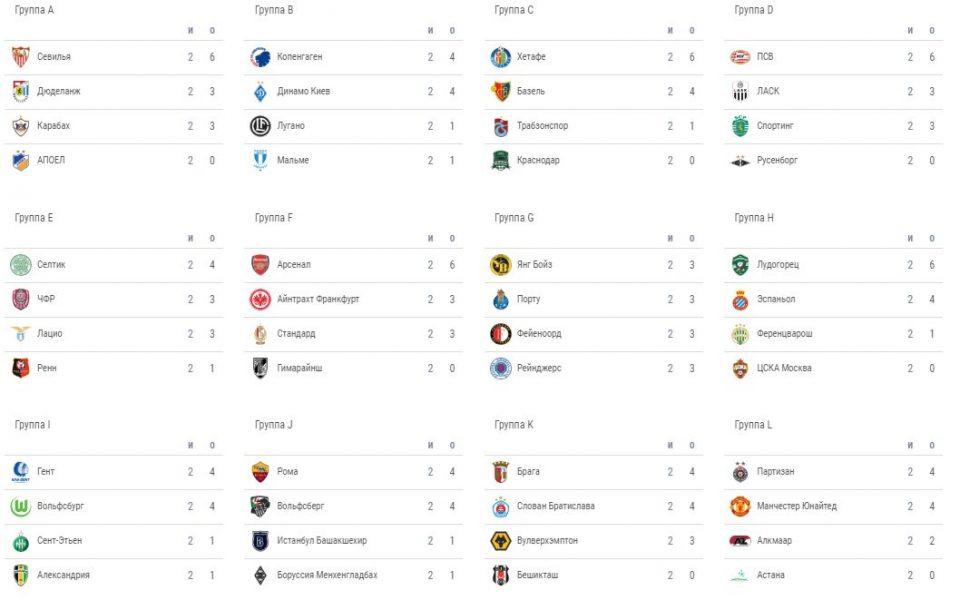Завершился второй тур группового этапа Лиги Европы. Традиционно для турнира все команды играли в один день и в четверг, 3 октября, уже определились явные лидеры и явные аутсайдеры своих групп. Давайте по порядку.
