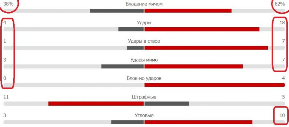 Обратите внимание на статистику! «Сырные фермеры» полностью переиграли своего соперника.