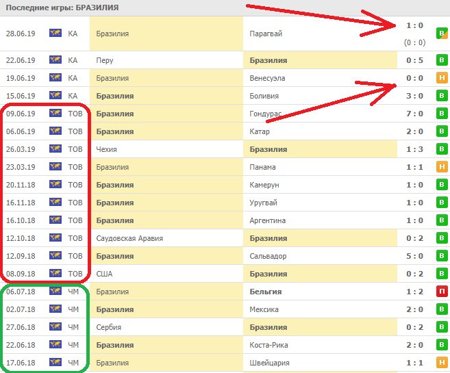 | Бразилия | 1. 9 2. 18 | 1. 3 2. 7 |