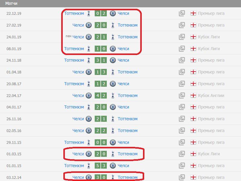 - Очные встречи. В последних 4 матчах подряд «Тоттенхэм» не может отличиться больше 1 забитым мячом.