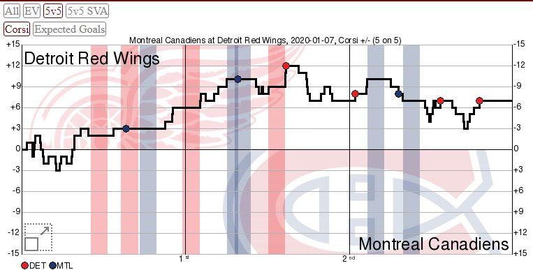 При игре в равных составах у «Детройта» отмечается заметное превосходство по показателю Корси.