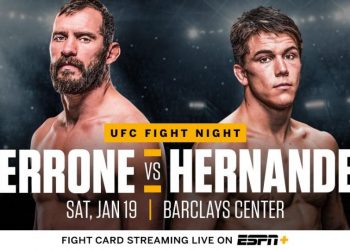20 января в Нью-Йорке на турнире UFC Fight Night 143 ветеран смешанных единоборств Дональд Серроне отметит в красочном бою свое возвращение в легкий вес. Соперником станет молодой проспект Александр Эрнандес. Поединок будет трёхраундовым.