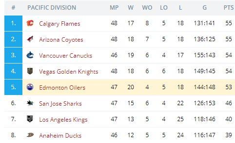 Нефтяники в прошлом туре в гостях проиграли «Калгари» в дерби Альберты со счетом 3:4, прервав серию из побед. Таким образом, с 5-матчевого выезда они привезли 7 очков, выиграв 3 матча, проиграв один в овертайме и один — в основное время.