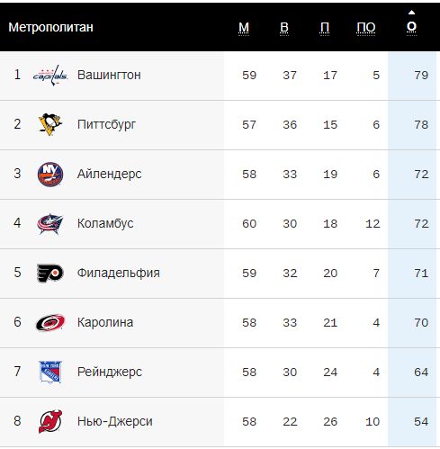 В Столичном дивизионе предстоит серьезнейшая борьба за путевки в плей-офф между «Нью-Йорк Айлендерс», «Коламбусом», «Филадельфией» и «Каролиной». Еще и «Нью-Йорк Рейнджерс» может ввязаться в эту борьбу, если в ближайших матчах выдаст серию побед.