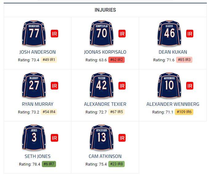 Сет Джонс — ключевой защитник команды. Кэм Аткинсон — один из лучших форвардов команды, Александр Тексье сильно проводил сезон до получения травмы. Йонас Корписало позиционировался как первый номер команды. Элвис Мерзликинс сейчас довольно успешно его подменяет, но кто будет подменять Мерзликинса — вопрос риторический.