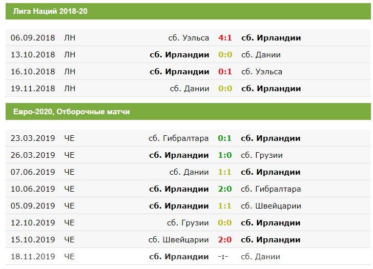 По статистике коллектив Мика Маккарти не так часто распечатывает ворота соперника: в 11 играх (Лига Наций + отбороные матчи ЕВРО-2020) было забито лишь 7 мячей, из них 3 в ворота Гибралтара. То есть, за 9 игр — 4 гола, сборная испытывает проблемы с созданием голевых моментов и их завершением. Поэтому, можно сделать вывод, что команда будет играть от обороны. Защита же ирландцев в группе D — одна из лучших, где пропустив 4 мяча.