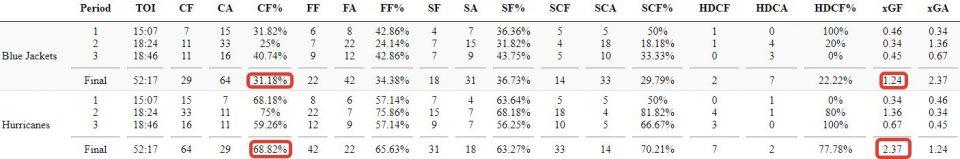 Накануне «Каролина» потерпела обидное поражение в гостях от «Коламбуса» 2:3. Ураганы превзошли соперника практически по всем игровым показателям. По броскам в створ ворот 34-18 в пользу «Каролины», по показателю Корси примерно 69% на 31%, по потенциальным голам 2,37 против 1.24 — все в пользу «Каролины».